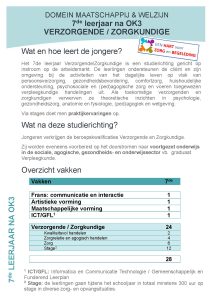 Wat na deze studierichting?Jongeren verkrijgen de beroepskwalificaties Verzorgende en Zorgkundige. Zij worden eveneens voorbereid op het doorstromen naar voortgezet onderwijs in de sociale, agogische, gezondheids- en onderwijssector vb. graduaat Verpleegkunde. |